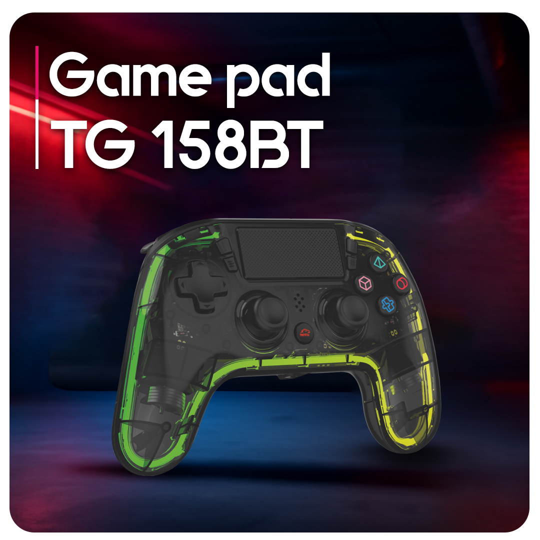دسته گیم TG 158BT دارای نورپردازی LED در قسمت خانه و نوار نور LED است که ظاهری جذاب و مدرن به دسته میبخشد.