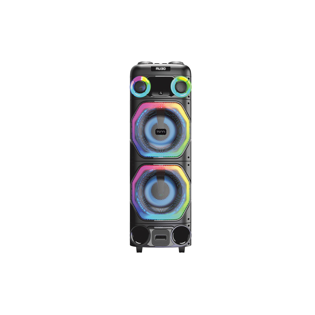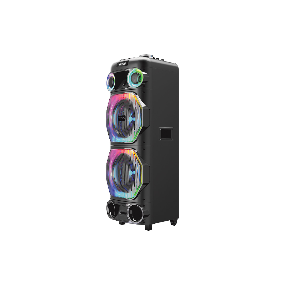 دارای دو ساب ووفر 10 اینچی و یک توییتر 3 اینچی ,دارای دکمه پاور ,دارای نمایش نور RGB و نورهای لیزری ,دکمه اختصاصی روی پنل برای تقویت بیس در موسیقی ,پنل حرفه ای برای تنظیم صدای بلندگو، باس، تریبل، صدای میکروفون و اکو و صدای گیتار |