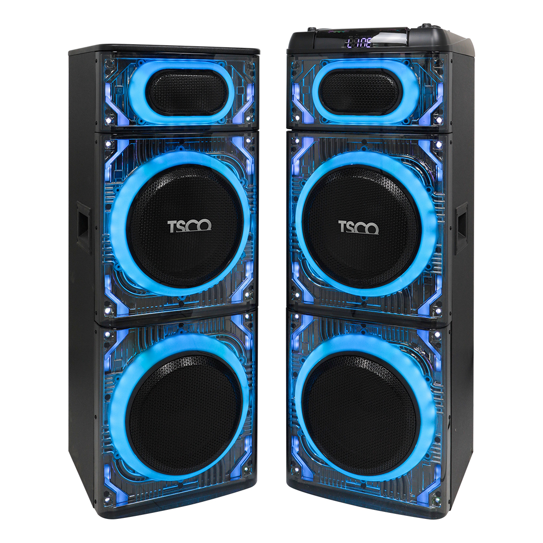 طبق عکس و اطلاعات فنی، دور هر ووفر یک حلقه LED چندرنگ قرار دارد که با ریتم موسیقی واکنش نشان میدهد. این نورپردازی به کمک گزینه LED On/Off قابل کنترل است و میتواند محیط را تبدیل به یک فضای مهمانی حرفهای کند.