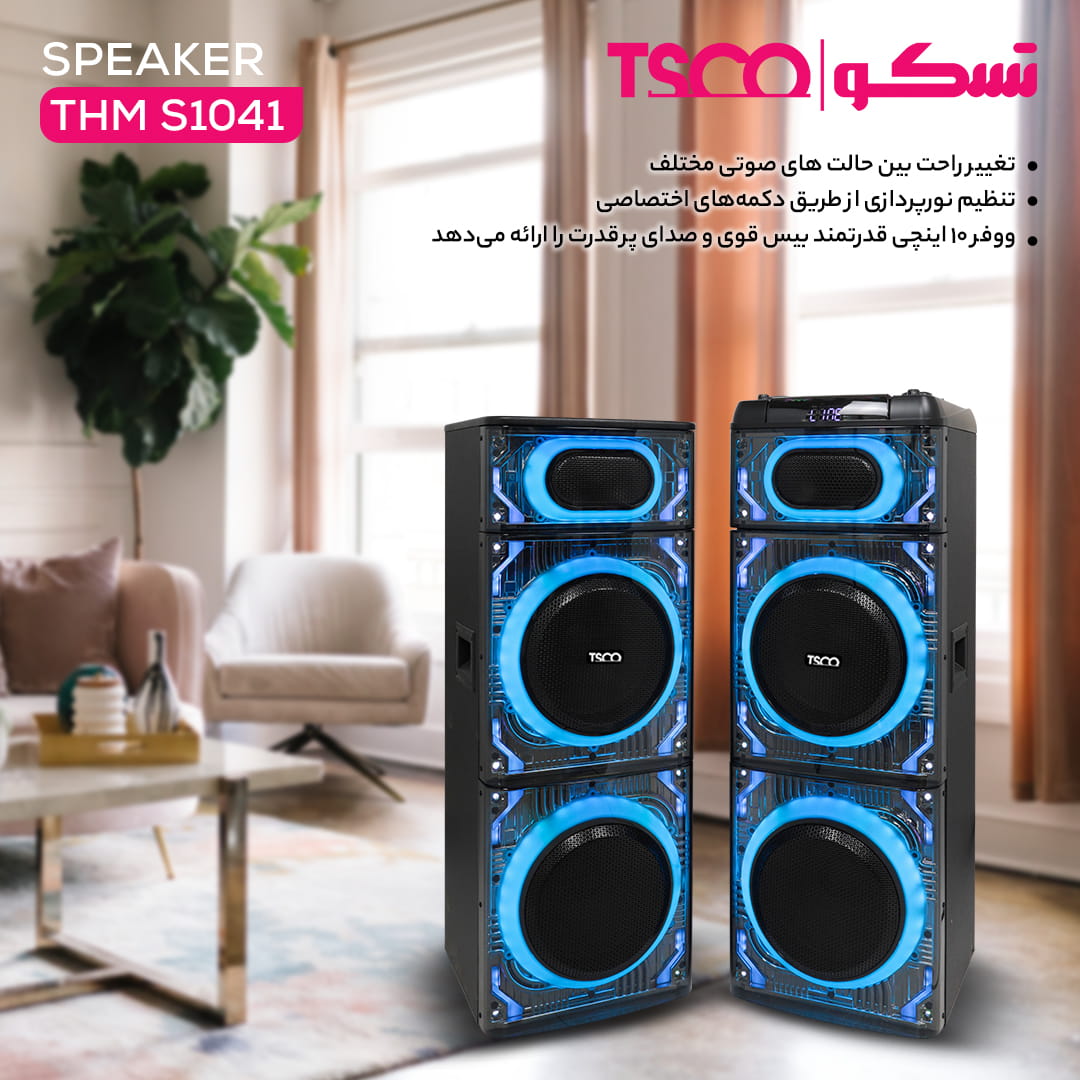 اسپیکر خانگی تسکو مدل THM S1041 از همان لحظه اول نشان میدهد که برای چه ساخته شده؛ قدرت، هیجان و خلق یک فضای پرانرژی.