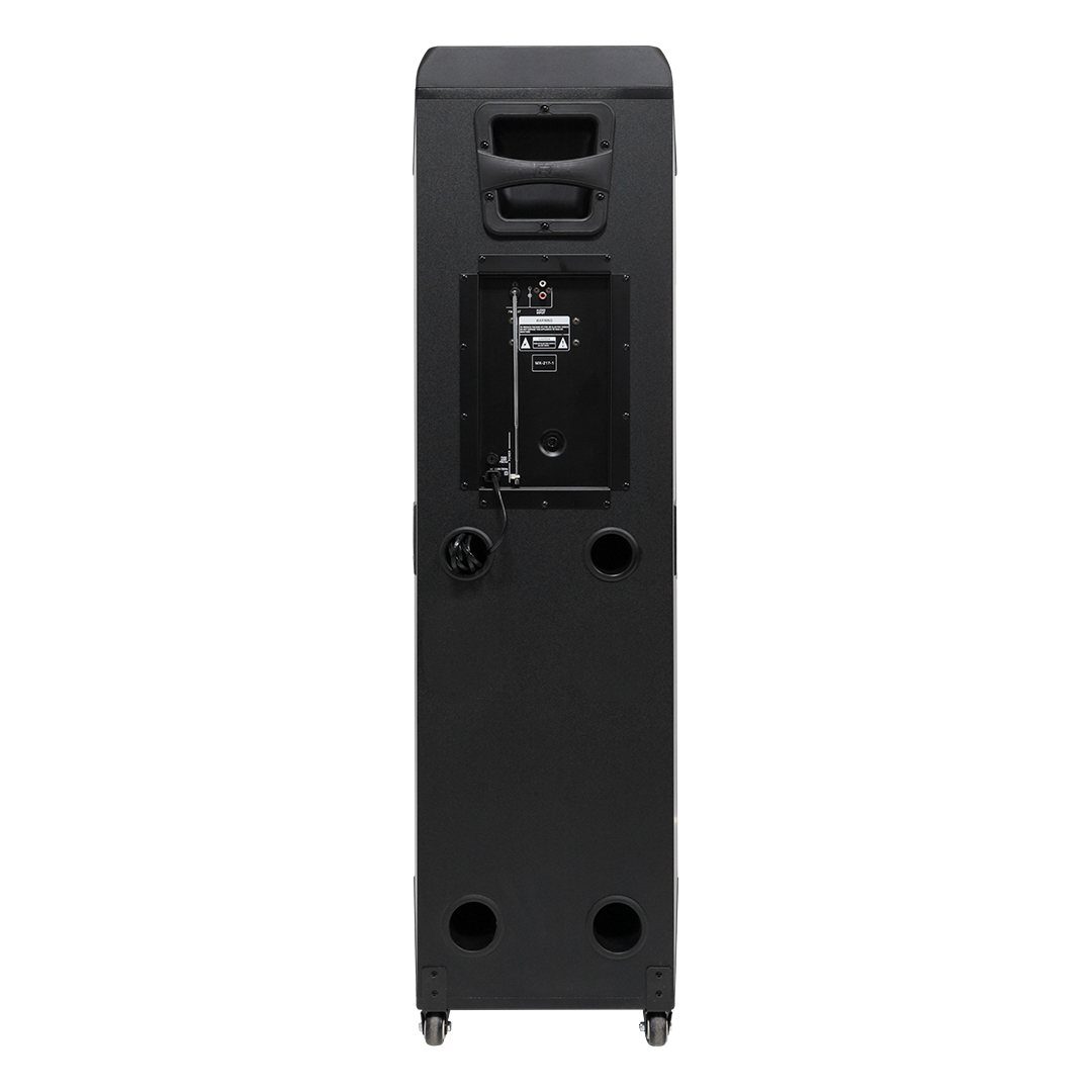 ارتفاع بلند، دو ووفر عظیم و حلقههای نوری چشمگیر باعث شده این مدل در هر محیطی شبیه یک ستون صوتی حرفهای دیده شود.