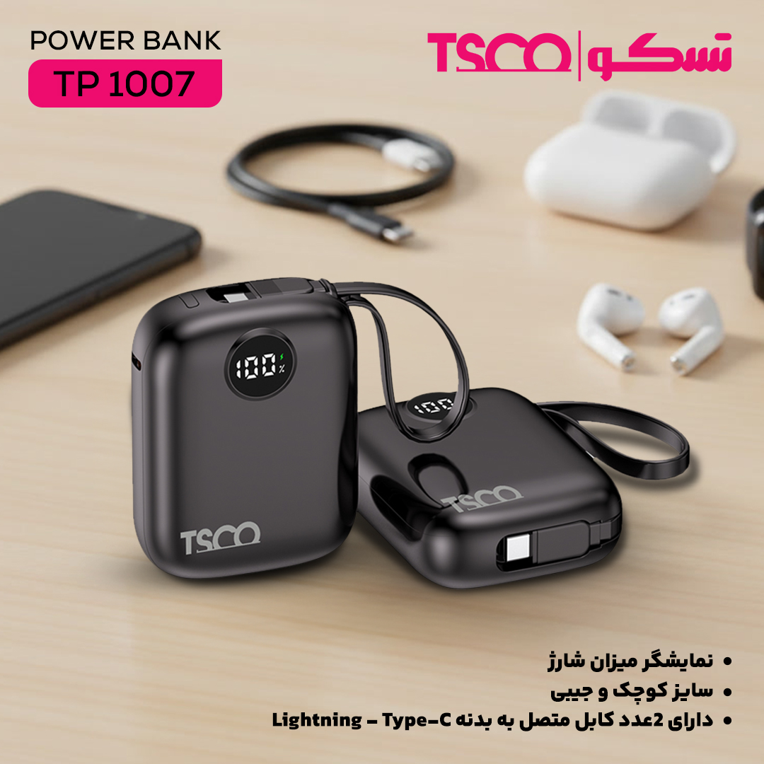 - پاوربانک تسکو مدل TP1007| یک پاوربانک کوچک، خوشدست و بدون دردسر حمل کابل هست