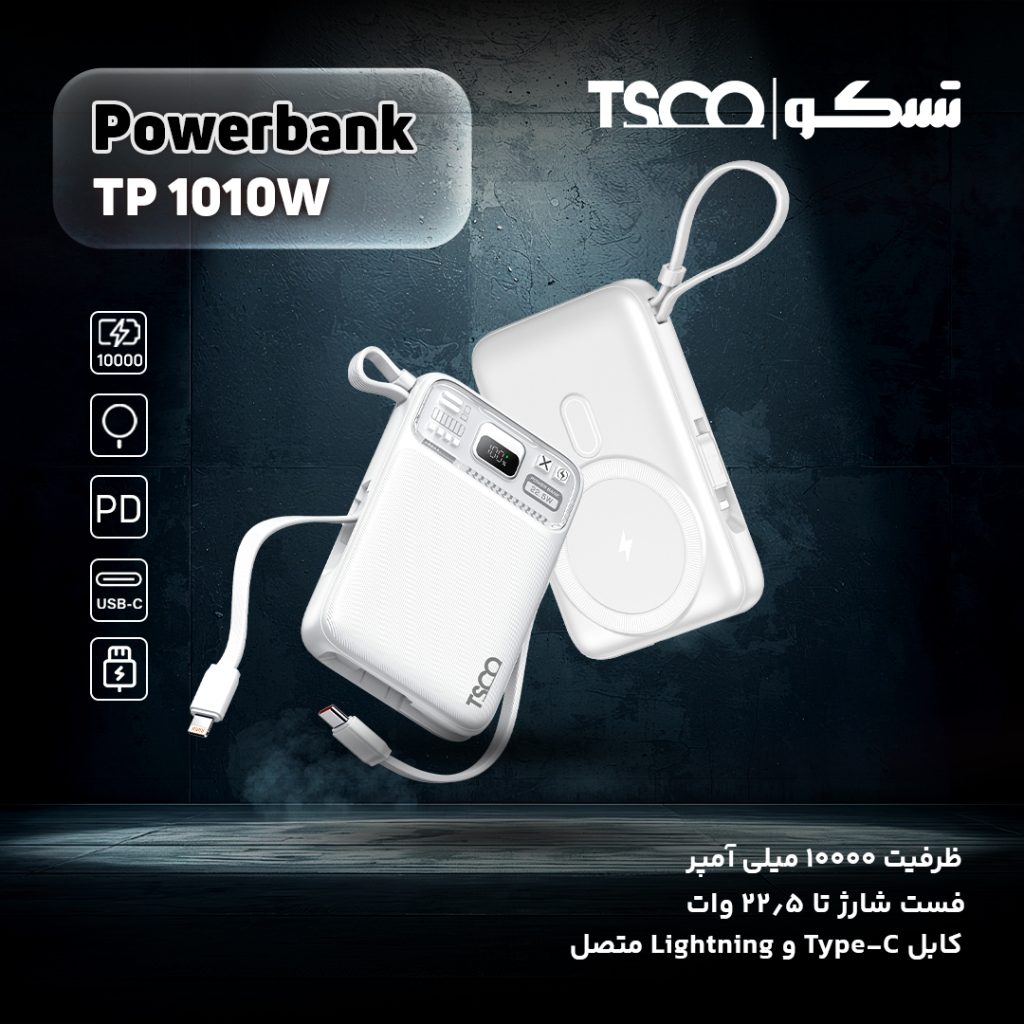 اینجا دقیقاً جایی است که پاوربانک تسکو مدل TP 1010W وارد عمل میشود؛ همراهی کوچک اما قدرتمند که میتواند خیال شما را از بابت شارژ دستگاههایتان راحت کند.