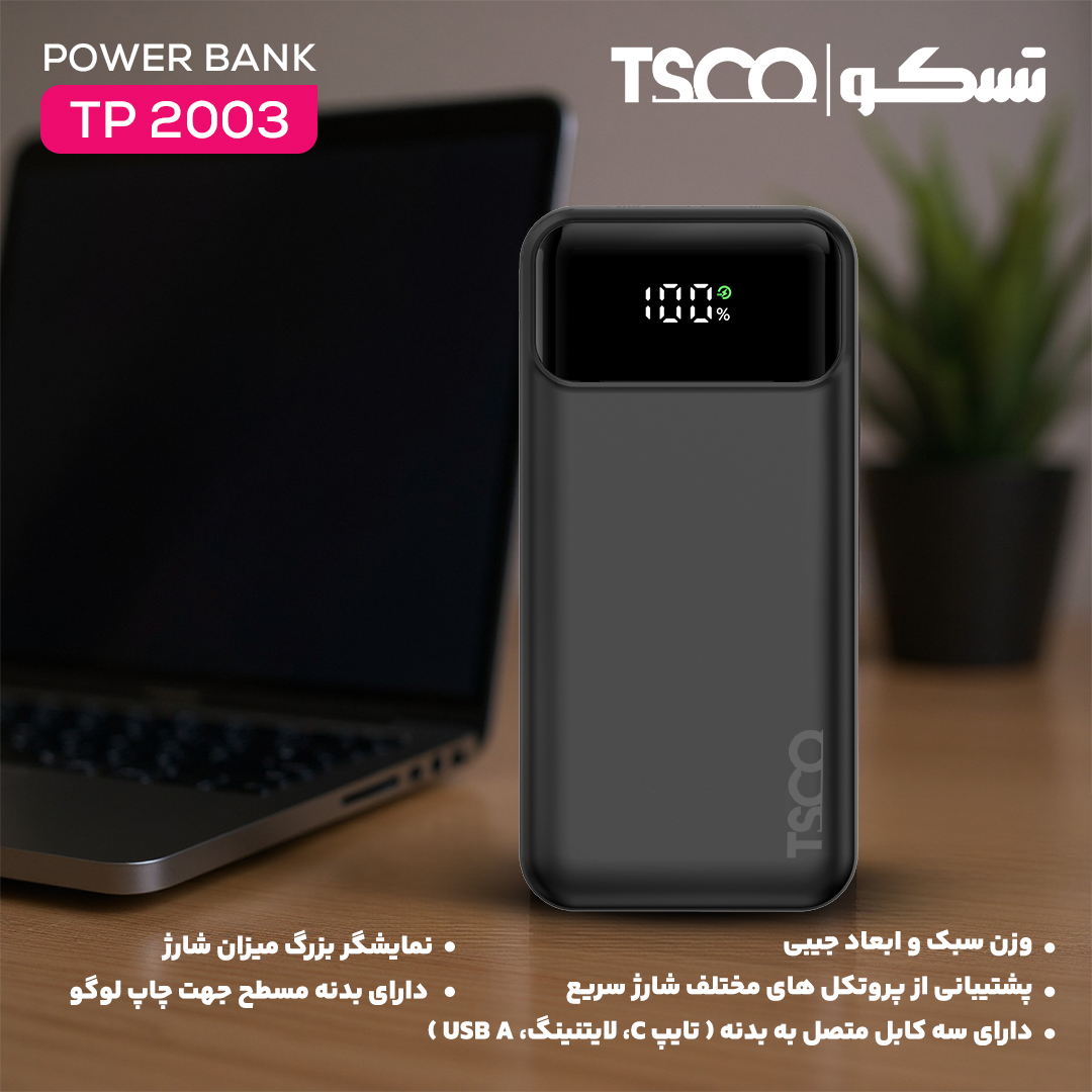 پاوربانک تسکو مدل TP 2003 تنها یک شارژر همراه ساده نیست؛ بلکه محصولی است که با ترکیب ظرفیت بالا، طراحی هوشمندانه و امکانات کاربردی، به یک همراه مطمئن برای تمامی افراد تبدیل میشود.