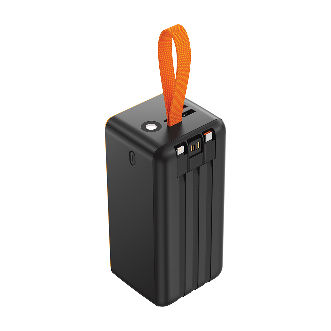 درگاه ورودی اصلی این پاوربانک Type-C است که از جریانهای 5V3A، 9V2A و 12V1.5A پشتیبانی میکند تا فرایند شارژ دستگاه با بیشترین سرعت ممکن انجام شود. علاوه بر آن، یک کابل USB-A ورودی به بدنه متصل شده که به کاربر اجازه میدهد حتی در شرایطی که به کابل اختصاصی دسترسی ندارد، بتواند پاوربانک را شارژ کند. این ویژگی در سفر و کمپ که امکانات محدود است بسیار کاربردی میشود.
