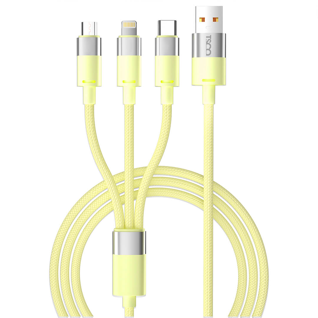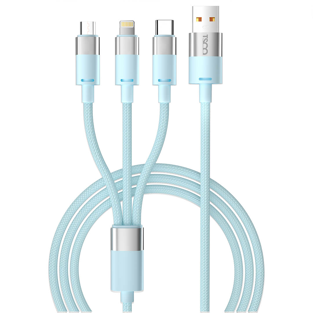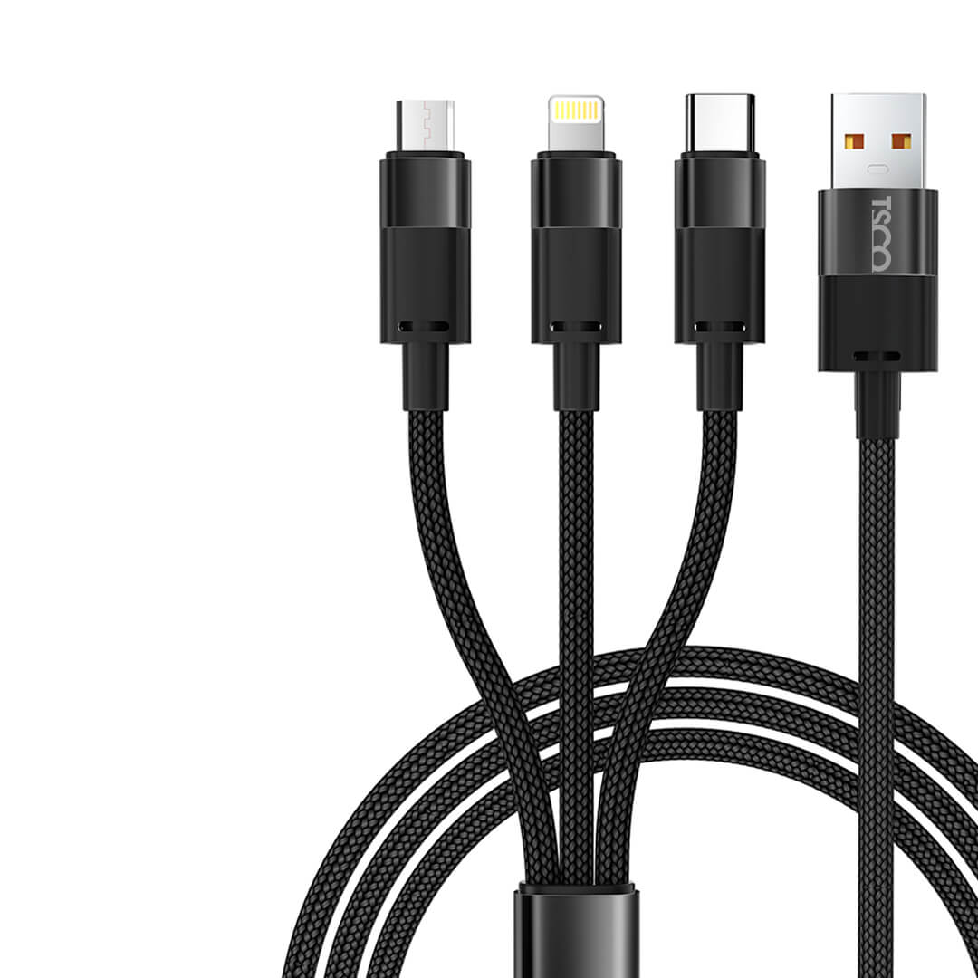کابل شارژ تسکو مدل TCT 111 با سه نوع کانکتور USB-A به USB-C، USB-A به Lightning و USB-A به Micro طراحی شده است تا همه دستگاههای شما را تنها با یک کابل پوشش دهد.