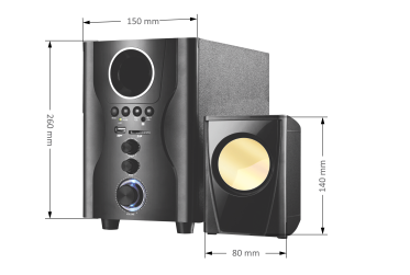 ابعاد اسپیکرهای ستلایت حدود 140*95*80 میلیمتر و ابعاد سابووفرهای این اسپیکر حدود 225*260*150 میلیمتر است.